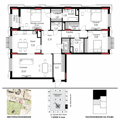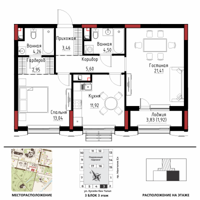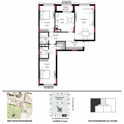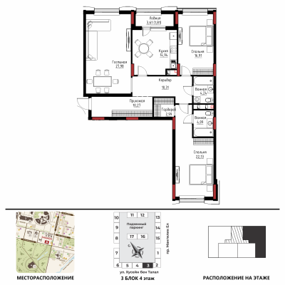 Дом расположен в районе «Есиль», пересечение пр. Мәңгілік Ел и ул. Хусейн бен Талал 9/3