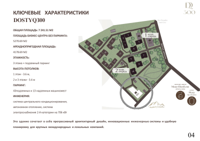 Бизнес-центр класса «A», воплощающий современные стандарты комфорта и деловой репутации. Расположен в самом сердце Алматы — на престижном проспекте Достык. Идеальный выбор для амбициозного бизнеса. Бизнес-центр расположен в престижном районе Алматы — на историческом проспекте Достык, одной из главных деловых артерий города. Окружён статусными ресторанами, культурными объектами и природными достопримечательностями — Терренкуром, канатной дорогой на Шымбулак и катком Медеу. Это центр деловой жизни с высококлассной инфраструктурой и безупречной репутацией.
