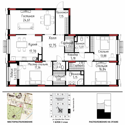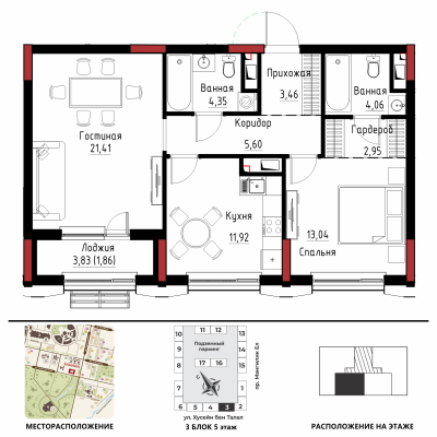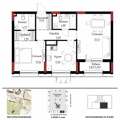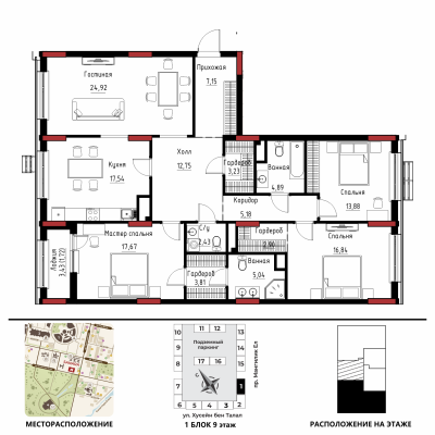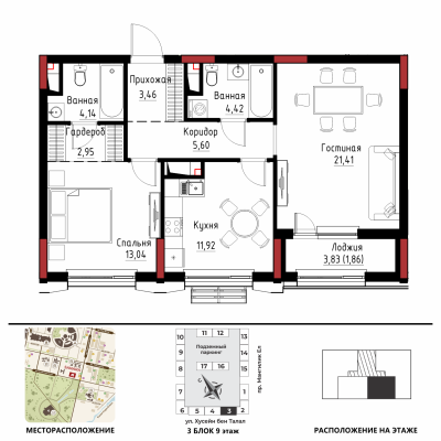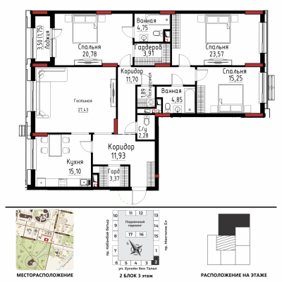 Дом расположен в районе «Есиль», пересечение пр. Мәңгілік Ел и ул. Хусейн бен Талал 9/3